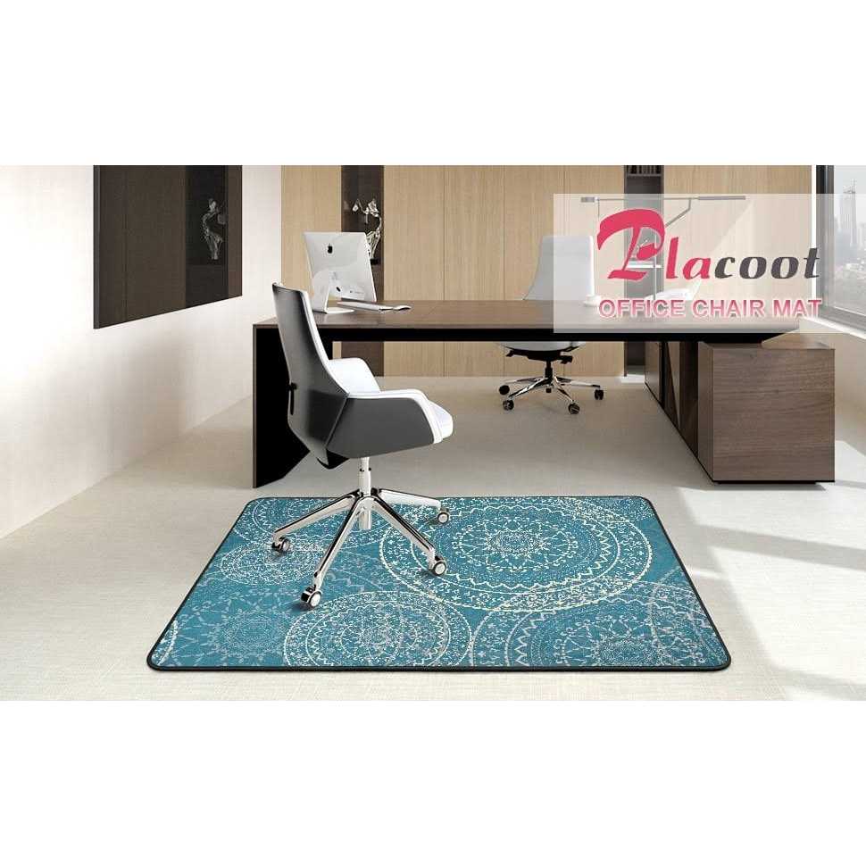 EEasy rolling, no sharp edges The office chair mat is tightly wrapped in printed fabric so thatthe chair wheels roll on it easily. 5mm thickness Sufficient thickness and stiff material,making it suitable for carpets and hard floors. Non-slip and noise-reducing The non-slip rubberized dots ensure the mat stays in place on any floor,including hard surfaces and carpets,and it absorbs noise and is quieter.