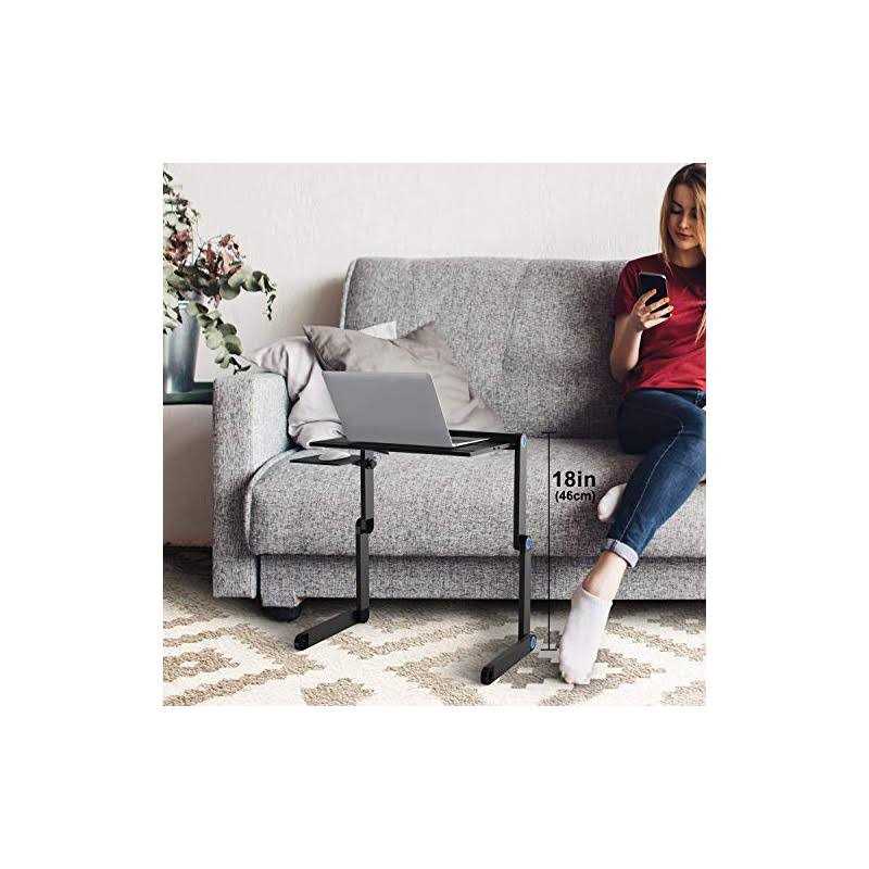 LIGHTWEIGHT ALUMINUM TRAY: The standing laptop desk is made of durable aluminum alloy and the legs are connected by ABS plastic automatic locking joints. Although the table is only 3.5 lbs, it can support 17 inches notebook and bear up to 33 lbs. 360° ROTATING JOINT: This lap stand is designed with full control and flexibility for convenience. Just press and hold the adjustment button and rotate it to the angle you want, then release to lock. The three foldable legs can be set at multiple angles, allowing you to study or work in the most comfortable posture at home. ERGONOMICS & HUMANIZED DESIGN: The laptop stand can also be used as a computer riser on the desk and help to relieve the pain on the neck and shoulders caused by long-term use of the notebook. The built-in high-power silent cooling fan can prevent the chromebook from overheating. The slidable stoppers can freely adjust the spacing to prevent tablets of various sizes from falling. And the detachable mouse pad provide the convenience for both left handed and right handed. VERSATILE USAGE: This adjustable laptop stand can be used as a cozy table for bed and sofa, a standing desk on the floor, a eating tray for couch, a book holder for writing, etc. You can adjust the legs at will to discover more desk shape, which is very suitable for people with strong hands-on ability. NO ASSEMBLY REQUIRED: Every detail is carefully designed to meet the needs of everyone. Foldable and adjustable to use out of the box, the elegant packaging makes this laptop stand an ideal gift for Father’s Day, Mother’s Day, Christmas and birthday.