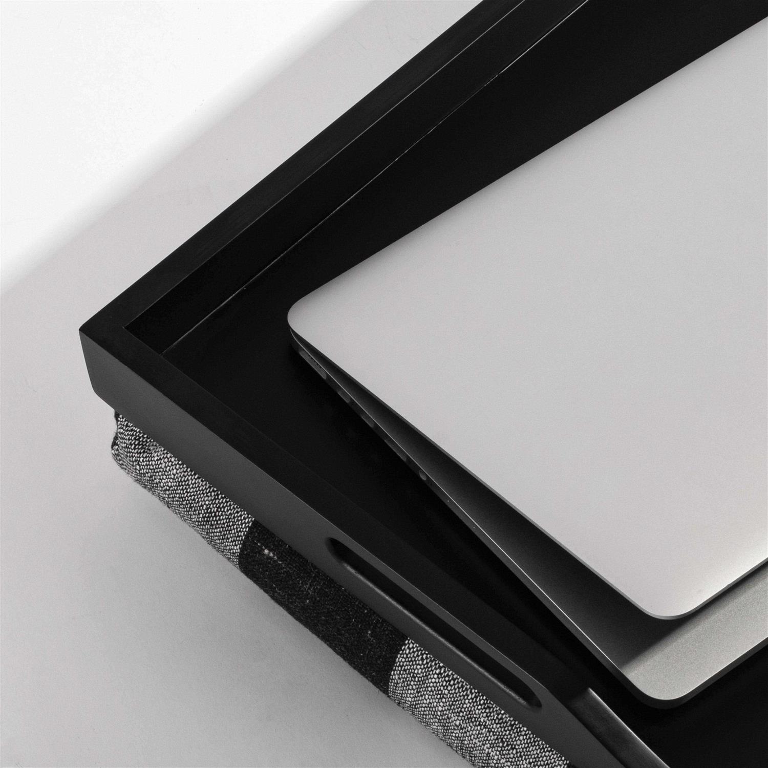 The Rossie Home Wood Lap Tray with Detachable Pillow is crafted with your work, play, and entertaining needs in mind. Constructed of painted wood, this sturdy lap tray is designed with sleek lines and plush, conforming cushion that will keep you comfortable while working, eating, or giving yourself a manicure. Transition effortlessly from lap tray to serving tray by easily attaching or detaching the pillow cushion using the built-in buttons. The rich, woven fabric of the cushion cover is an extra detail added to this product to not only give it a nicer appeal but also to give the cushion more use and longevity. Unzip the cushion cover from the pillow to machine or hand wash it to keep it fresh and clean at your convenience. This lap tray fits laptops up to 15.6 on its surface or a standard 10.5-inch dinner plate, standard 16 oz. drinking glass, and eating utensils easily.