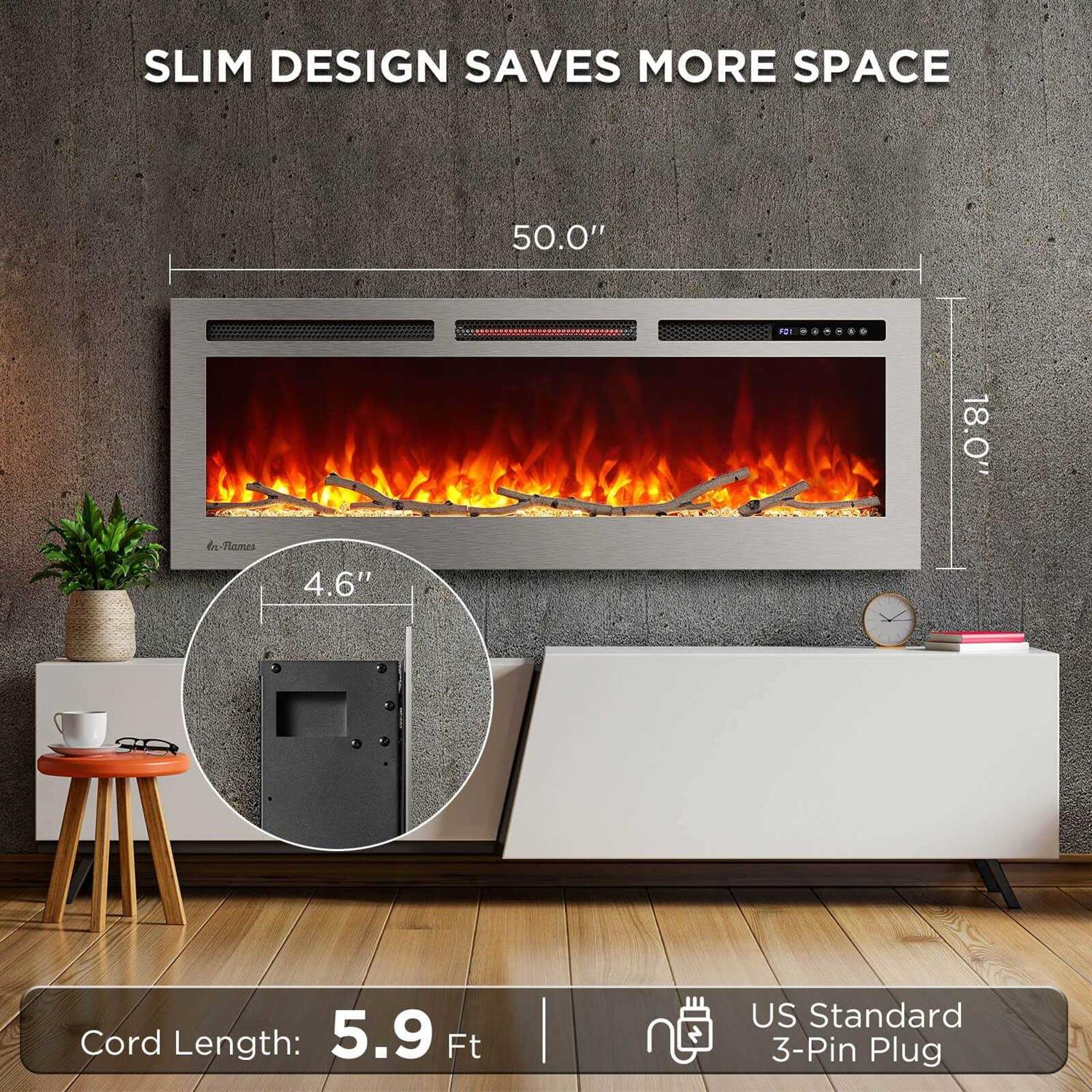 TURBRO 50 inch Smart WiFi Infrared Electric Fireplace with Sound Crackling and Realistic Flame, 1500W Quartz Heater, Recessed or Wall Mounted,