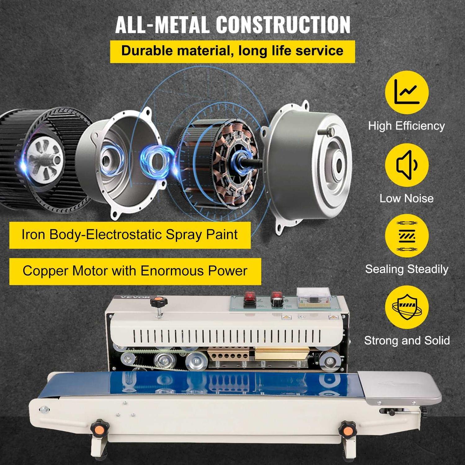 VEVOR Continuous Band Sealer, 0.24-0.6 in/6-15 mm Seal Width, Fr900 110V/60Hz Horizontal Sealing Machine, Band Heat Sealer Wit