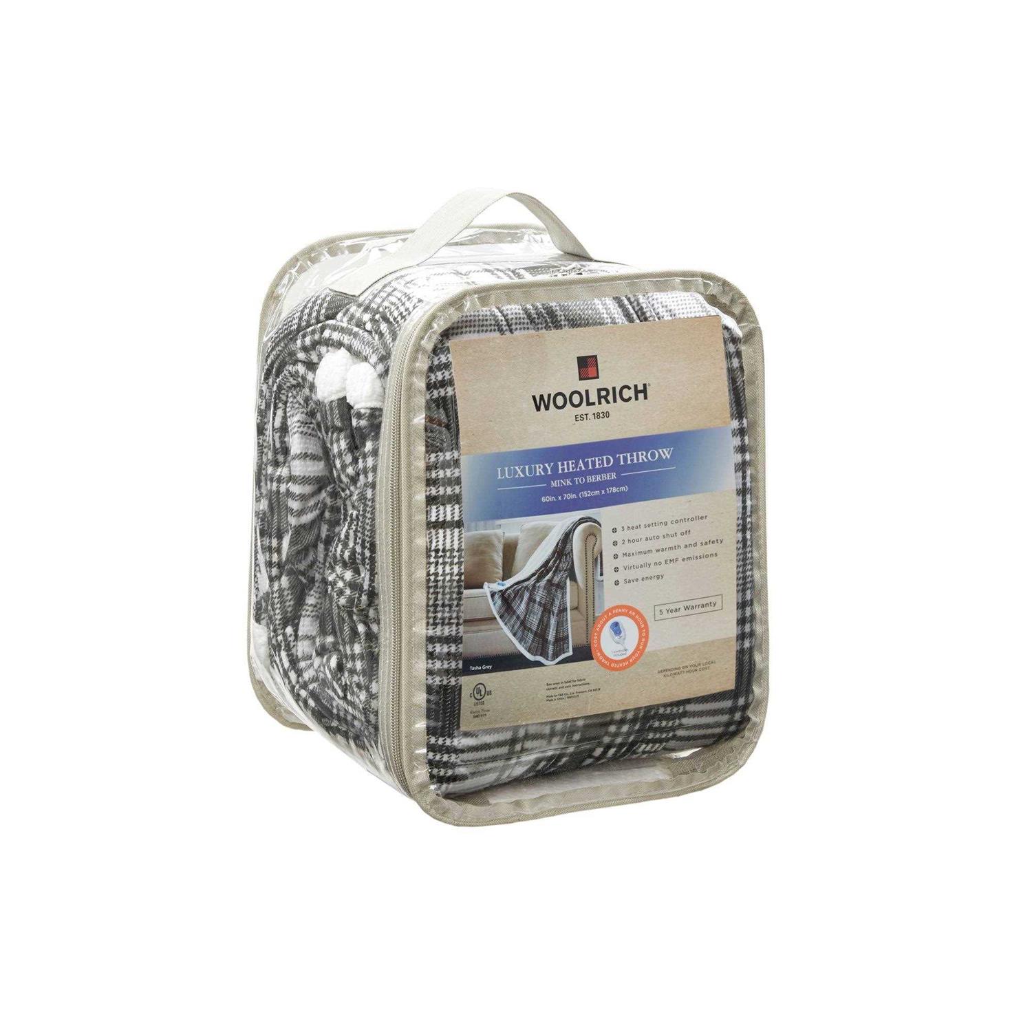 Open-Box — The Woolrich heated throw utilizes state of the art secure comfort heated Technology that adjusts the temperature of your throw based on overall temperature, spot temperatures and the ambient temperature of your room, ensuring a consistent flow of warmth. This unique technology also emits virtually no electromagnetic field emissions, so you can snuggle up with confidence. This throw is oversized, nearly a foot larger in the Length and width compared to standard heated throws. The ultra soft plush fabric and the lofty Berber reverse creates a cozy, comfortable throw. Featuring 3 heat settings, This throw is machine washable for easy care.